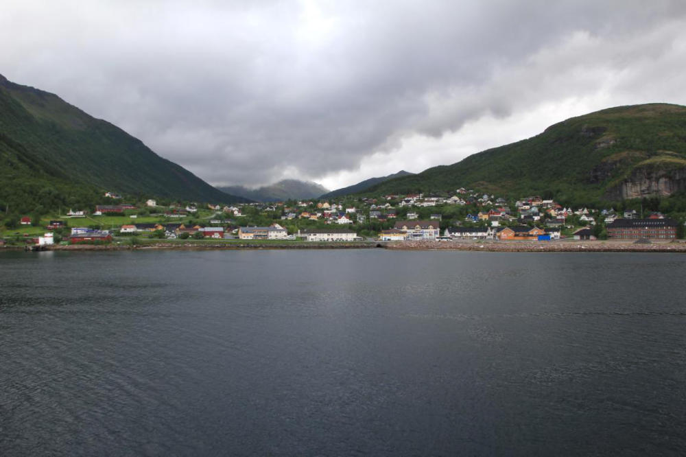 ØrnesKurz vor 7 Uhr erreichen wir Ørnes. Ein kleiner Ort, der sich in eine Bucht einschmiegt. Das Wetter heute morgen ist noch nicht viel besser, als gestern. Aber das wird noch.
