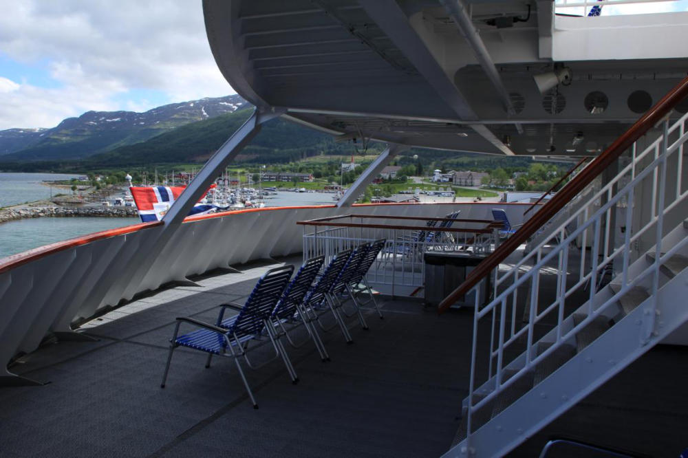 Pünktlich um 17 Uhr legt die FINNMARKEN in Bronnøysund ab. Nächster Halt wird dann um 20:30 Uhr in Rørvik sein.