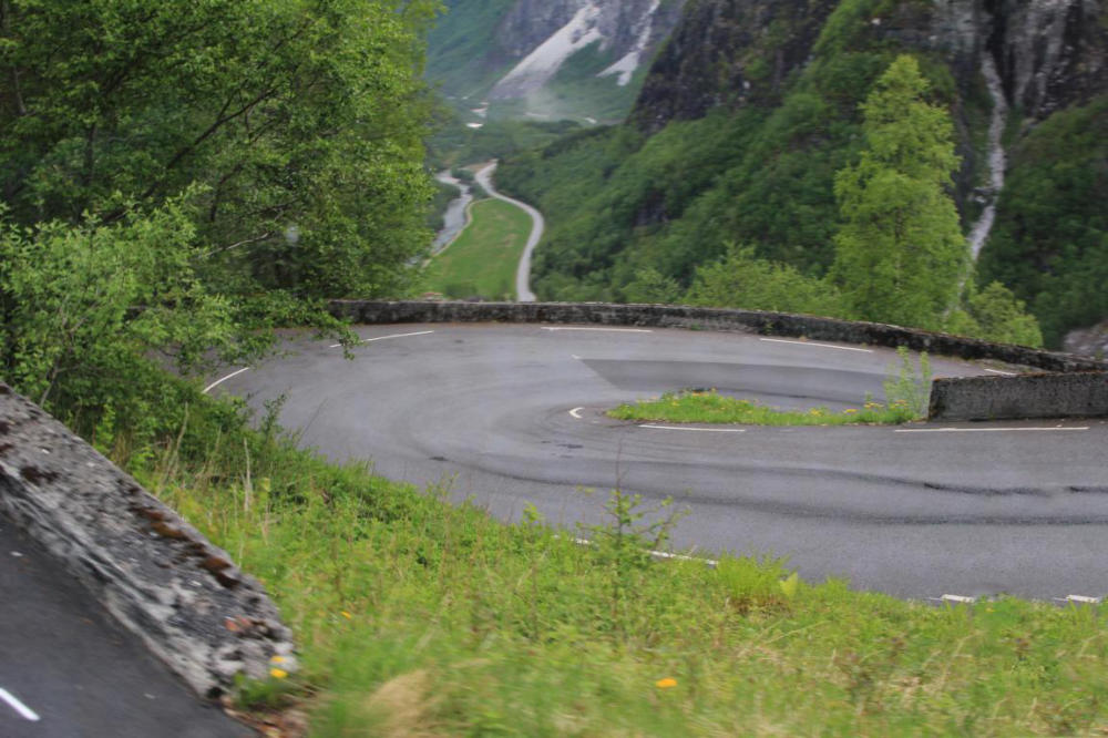 Die Stalheimskleivastraße schlängelt sich in 13 Serpentinen mit einem Gefälle von teilweise 18 %