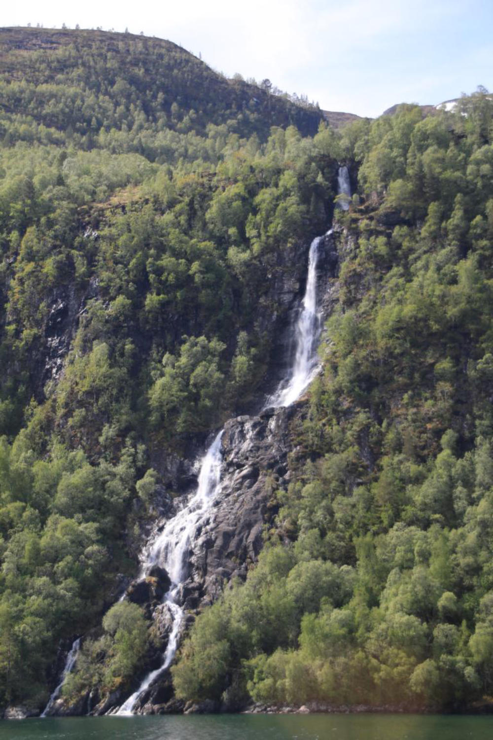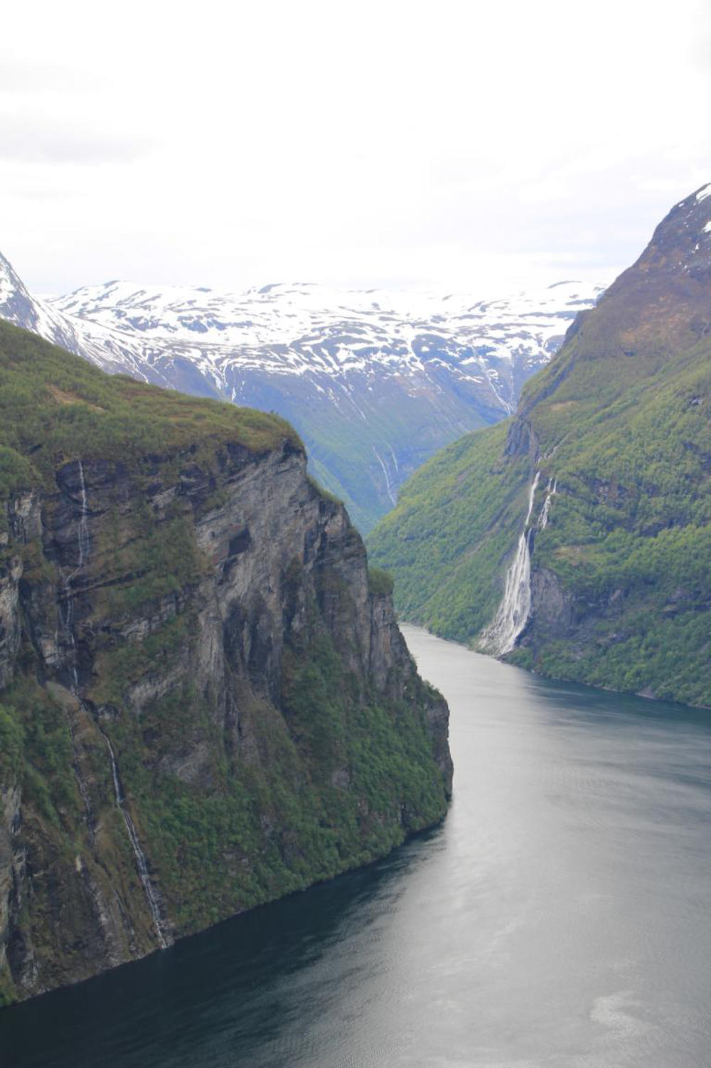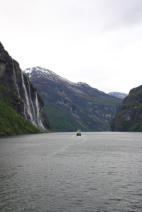 Die Einfahrt in den nur 16 km langen Geirangerfjord ist sehr beeindruckend. Schroff abfallende Felsen, Wasserfälle und atemberaubende Natur lässt uns erkennen, wie klein wir doch sind.