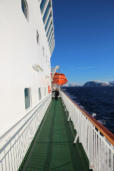 Der heutige Sonnenaufgang entschädigt für die unruhige Nacht. So bin ich schon um 6:30 Uhr an Deck und genieße den herrlichen Ausblick. Das Wetter ist ein Traum.
