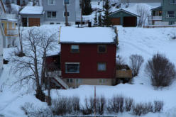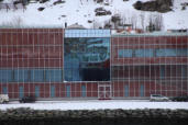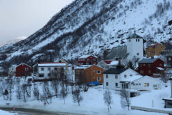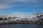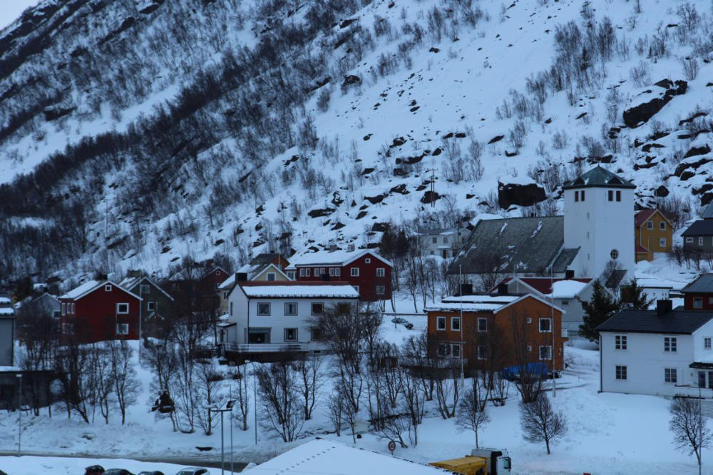 In Hammerfest bin ich auf den Hausberg Salen gekraxelt. Wie manauf dem Foto sieht, war das nicht ganz ohne, weil der Weg relativ steil und außerdem ziemlich eingeschneit war. Vom Geländer ragte auch nur wenig aus dem Schnee hervor. Der Blick auf die Bucht und die Stadt entschädigt allerdings für die Strapazen.