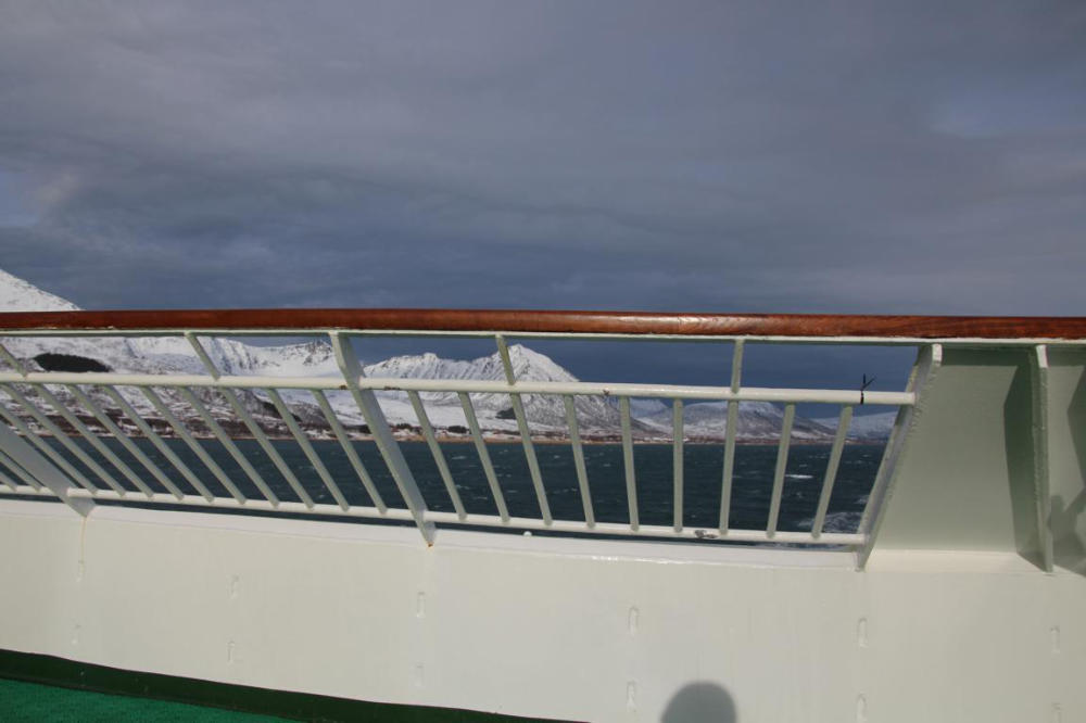 …aber nur vorübergehend. Bei der Einfahrt in den Raftsund am Nachmittag ist es sehr ungemütlich und es wird immer stürmischer. Deshalb verzichtet unser Kapitän auch auf den Abstecher zum Trollfjord.Bei dem Wetter möchte er kein Risiko eingehen und so fahren wir sofort weiter nach Svolvær.