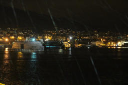 Wie schon 2011 haben wir wieder Kabine 368 gebucht und fühlen uns sofort wie zuhause. Unglaublich, dass unsere erste Reise nun schon 4 Jahre zurückliegt. Zum Auslaufen um 22:30 Uhr gehen wir trotz des miserablen Wetters natürlich vorne auf Deck 5. Das gehört einfach dazu. Außerdem werden Erinnerungen an unsere erste Reise wach. Nachdem wir die Askøy-Brücke passiert haben, gehen wir in die Koje und freuen uns auf die Erlebnisse, die uns erwarten werden.