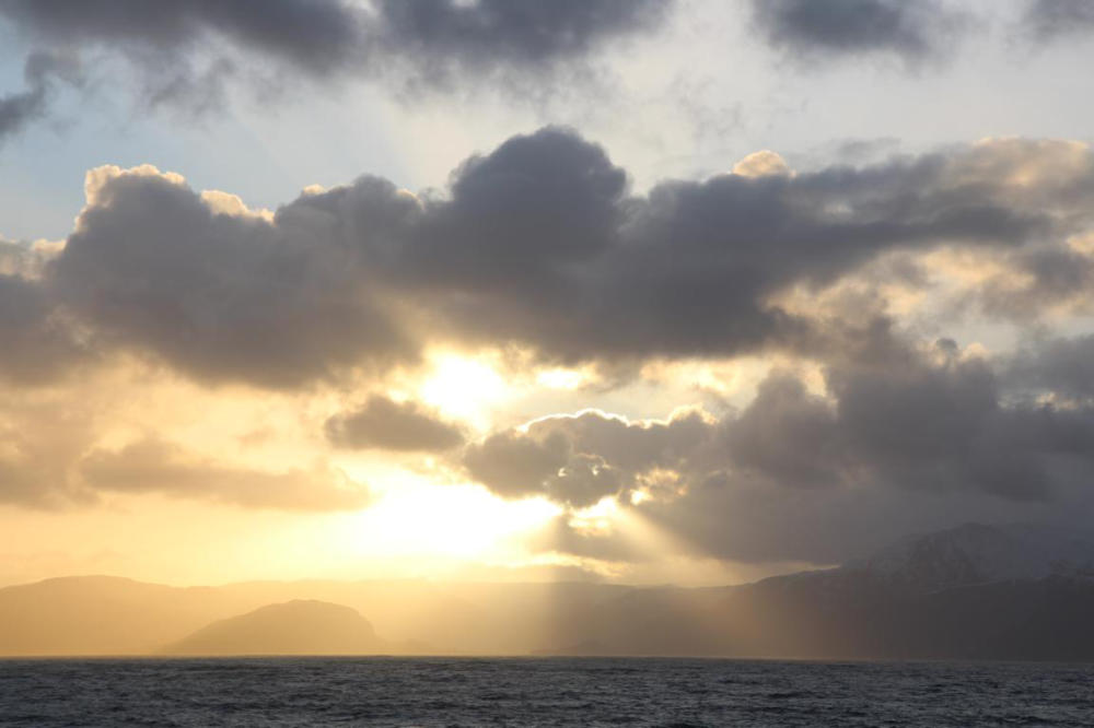 Am Vormittag fahren wir über die offene Seestrecke Stadhavet und es geht wieder recht ordentlich zur Sache. Mir wird bewusst, dass das Frühstück wieder raus möchte und so gebe ich diesem Gefühl schließlich nach. Jetzt geht es mir deutlich besser, sodass ich den Rest der Fahrt nach Ålesund genießen kann. Die Lichtstimmungen sind wieder einmalig schön. Typisch Norwegen.