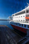 Dort holen wir unser Gepäck und nehmen ein Taxi zum Hurtigrutenterminal. Der Fahrer ist wohl Inder oder so und sein Englisch schlecht zu verstehen. Als ich mit meiner Kreditkarte bezahlen möchte, funktioniert sein Lesegerät nicht. Er fragt mich, ob ich 22 € hätte. Da er kein Kleingeld annimmt, bezahle ich nur 20 €. Auch nicht schlecht. Im Terminal ist nichts los, sodass wir schnell einchecken können. Danach müssen wir noch eine Viertelstunde warten, bis wir den obligatorischen Sicherheitsfilm über uns ergehen lassen können. Um 16:55 Uhr betreten wir die NORDNORGE. Endlich wieder an Bord eines Schiffes. Die Kabine ist noch nicht fertig, also schlendern wir übers Schiff und schalten schon mal unsere Cruisecards frei. Außerdem besorge ich mir WLAN, was mittlerweile auch 400 NOK ( rd. 40 € ) kostet. Gegen 18 Uhr lassen wir uns das Bergenbuffet schmecken. Wir fühlen uns wie zuhause. Dann schnell Koffer auspacken und pünktlich zum Auslaufen sind wir auf Deck 5 vorne. Wo auch sonst. Es ist noch relativ hell, hätten wir nicht gedacht. Wir bleiben draußen, bis die Askøybrücke hinter uns liegt. In der ersten Nacht schlafen wir nicht besonders. Wir müssen uns erst wieder an die Geräuschkulisse gewöhnen. Unglaublich, aber wir sind schon wieder an Bord eines Hurtigrutenschiffes. Uns geht's gut….