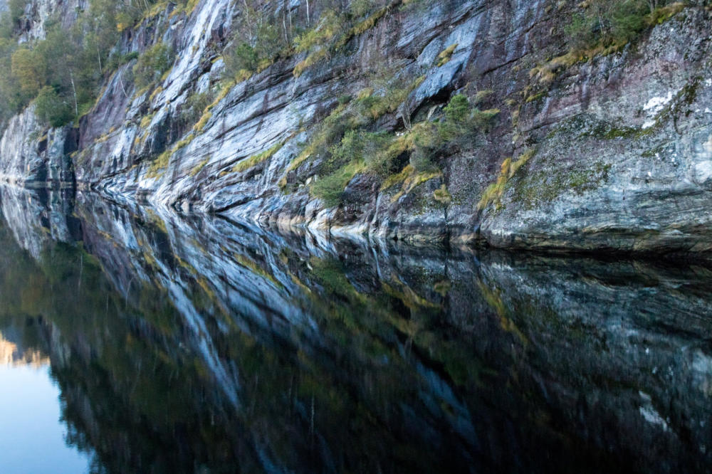 Wir sind einfach überwältigt. Dermaßen spiegelglattes Wasser haben wir noch nie gesehen. Und dann diese Landschaft dazu.