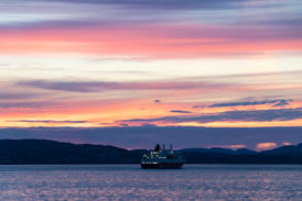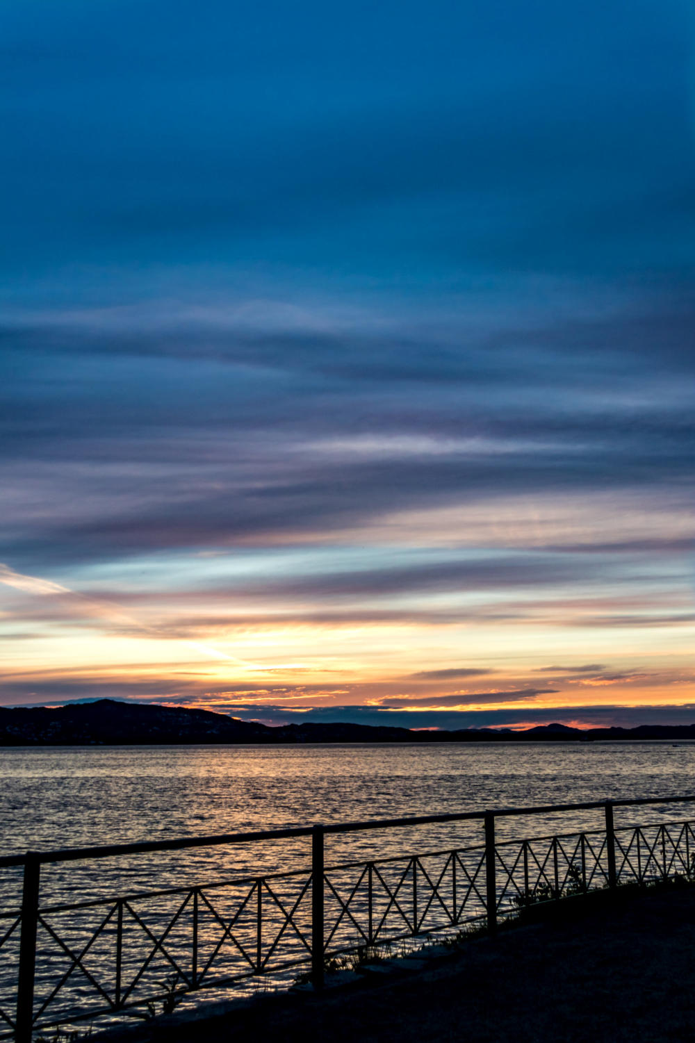 Nach dem Essen schlendern wir zum Hotel. Dort machen wir ein kleines Päuschen, um später nochmal loszuziehen. Wir gehen zum Nordnesparken, weil wir die NORDLYS zu ihrer nächsten Reise “verabschieden” möchten. Der Abendhimmel zeigt sich zum Abschluss nochmals mit all seinen Farben.