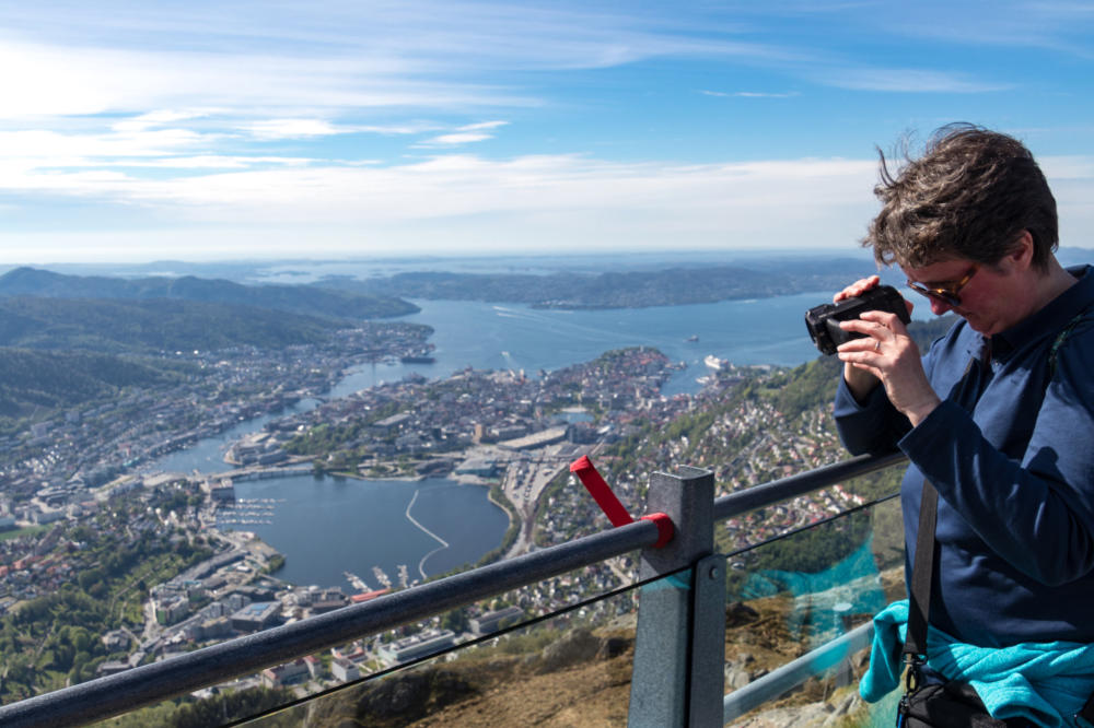 Einen etwas anderen Blick auf Bergen und Bryggen bietet die Aussichtsplattform des Hotels Clarion Collection. Einfach an der Rezeption nach der Keycard fragen und schon steht einem neuen Eindruck von Bergen nichts mehr im Weg. Es lohnt sich.