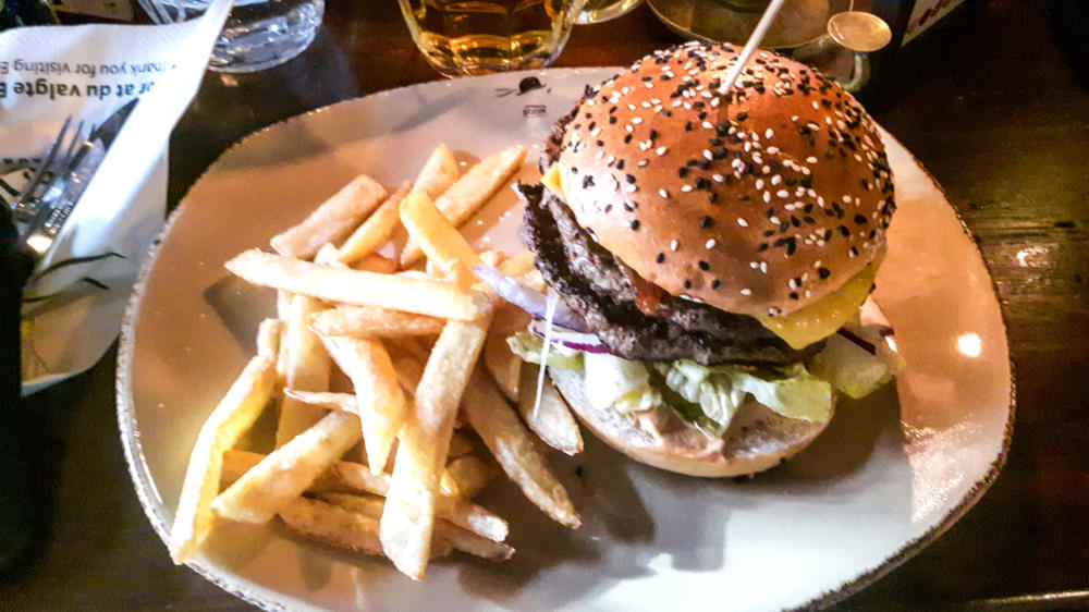 Wieder unten angekommen, schlendern wir etwas über den Jahrmarkt und an der Håkonshalle vorbei zurück Richtung Fischmarkt. Bei Egon’s beschließen wir den Abend mit einem leckeren Burger.
