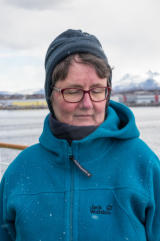Heute   müssen   wir   schon   um   17:30   Uhr   essen,   weil   wir   den   Ausflug "Höhepunkte   der   Lofoten"   (   948   NOK,   ca.   100   €   p.P.   )   gebucht haben.   Wir   sitzen   mit   2   älteren   Damen   aus   Schweden   am   Tisch.   Die beiden   bekommen   das   reguläre   Essen,   die   Lammkeule.   Wir   dagegen haben    uns    für    die    Alternative    entschieden    und    bekommen    sehr leckeren   gedünsteten   Schellfisch.   Die   Damen   sind   neidisch,   weil   an dem   Knochen   kaum   Fleisch   dran   ist   und   man   ganz   schön   piddeln muss. Wir haben also alles richtig gemacht. Unmittelbar     nach     der     Ankunft     in Stamsund   beginnt   um   19   Uhr   unser Ausflug      mit      Veronika,      unserer Reiseleiterin.   Offensichtlich   deutsche Muttersprachlerin,          also          sehr angenehm    für    uns.    Sie    erzählt    uns viel   Interessantes   über   die   Lofoten. U.a.,   dass   sich   die   Lofoten   immer   noch   um   jährlich   2   cm   anheben, seitdem    sie    in    der    Eiszeit    von    dem    2000    m    (    !!    )    dicken    Eis heruntergedrückt   wurden.   Auf   der   dem   Atlantik   zugewandten   Seite halten   wir   an   einer   Kirche,   die   mit   Stahlseilen   befestigt   ist,   damit   sie nicht wegfliegen kann bei Sturm. Das    Abendlicht    und    die    Landschaft    sind    grandios.    Der    Ausflug gehört auf jeden Fall zu den Highlights aller bisherigen Fahrten.