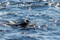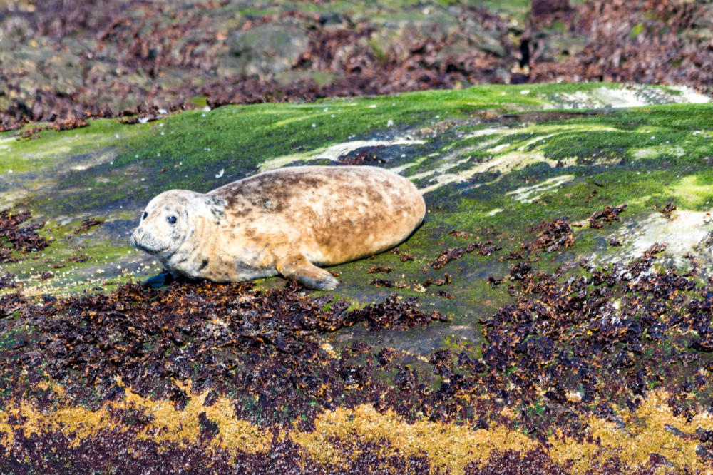 Die Fahrt zum Vogelfelsen ist wieder sehr schön. Wir sehen erst Kormorane, dann Papageitaucher, Tordalken, Basstölpel, Seeadler und natürlich Möwen. Das Fotografieren mit meinem neuen 150-500 Objektiv ist allerdings auf dem schwankenden Boot eine echte Herausforderung. Zumal die Papageitaucher immer unvermittelt tauchen, wenn man sie gerade im Visier hat. Es gelingen mir aber trotzdem ein paar schöne Aufnahmen. Auf der Rückseite des Vogelfelsens begegnen wir noch einer großen Gruppe (Kegel-)Robben, von denen mir auch ein paar schöne Fotos gelingen. Der Ausflug war, wie schon 2013, sehr schön und die Fahrt über die Insel einfach ein Traum. Auf der Rückfahrt zum Schiff sehen wir auch noch einige Rentiere. Was will man mehr.