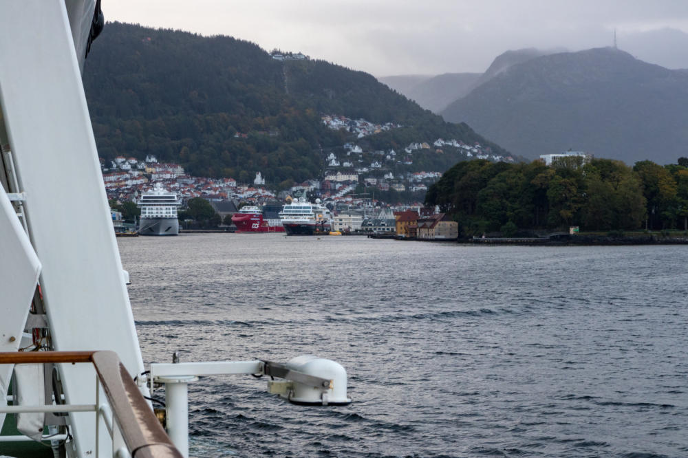 verlassen Bergen in verschiedene Richtungen. Irgendwie schon komisch, Bergen auf einem Schiff zu verlassen,