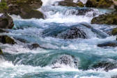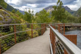 Über die Treppe entlang des in kleineren und größeren Wasserfällen zu Tal stürzenden Flusses steigen wir wieder