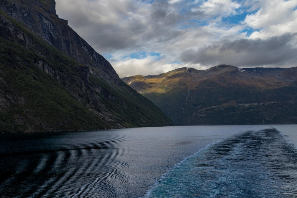 Pünktlich zum Ablegen in Hellesylt tun sich tatsächlich erste Wolkenlücken auf und das Wetter