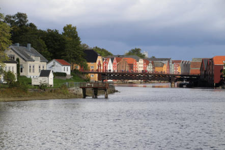 Nach dem Besuch bei Hurtigruten gehen wir wieder rüber zur AIDAsol und nehmenden Shuttlebus in die Stadt. Der Bus setzt uns vor dem Nidarosdom ab und von dort gehen wir einmal um den Dom herum. Dann über die Elgeseter bru auf die andereSeite der Nidelva.