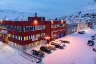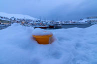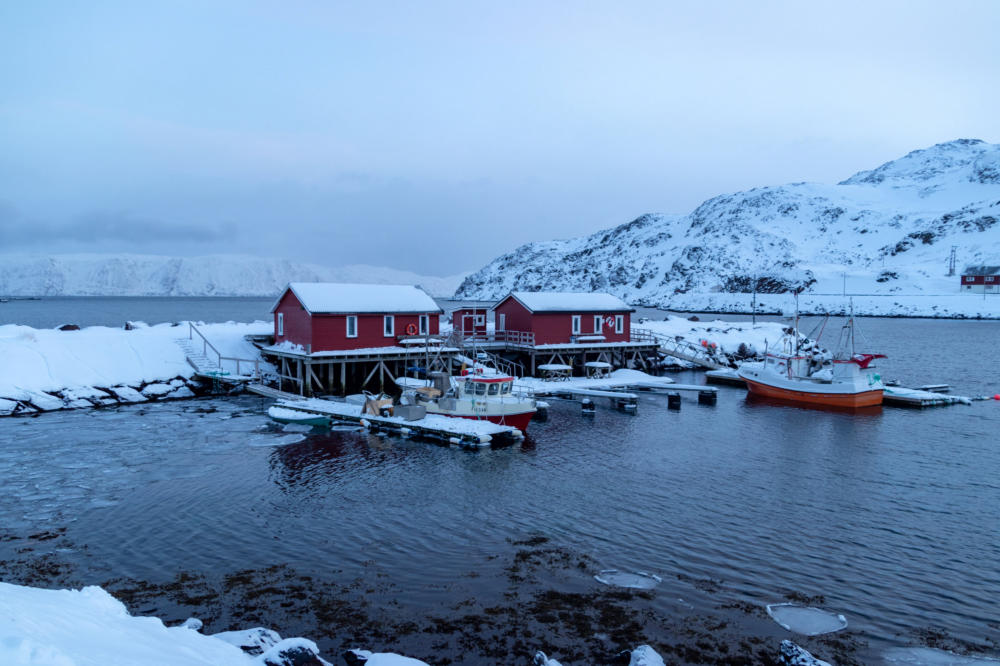 Die Fahrt über die tief verschneite Insel Magerøya führt uns zunächst ins Dorf Skarsvåg. Hier leben nur noch etwa 40 von